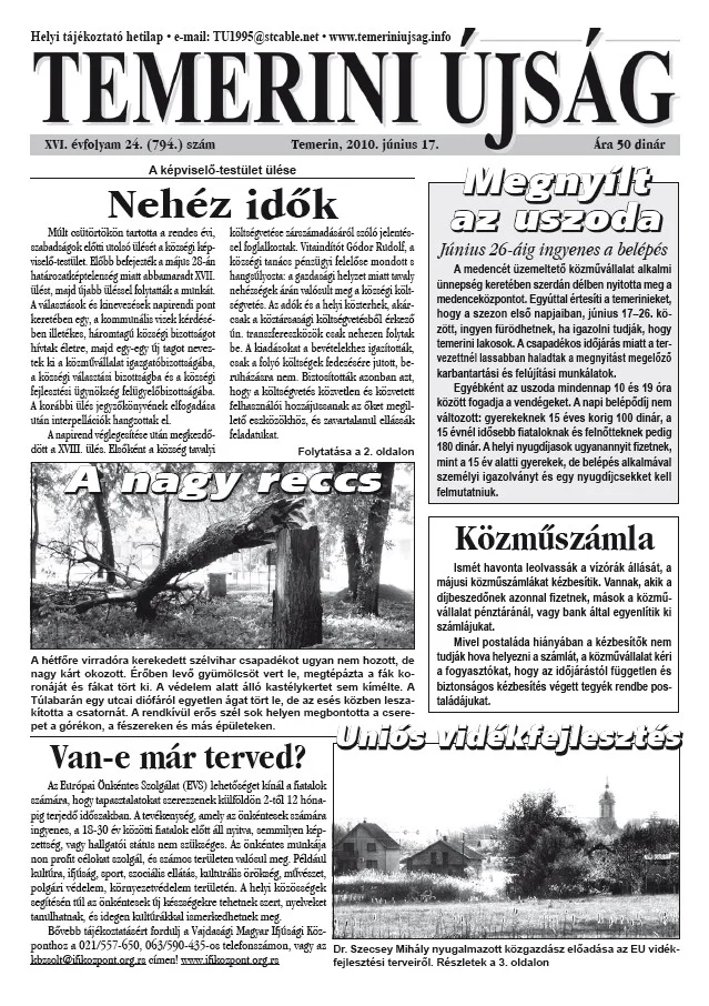 Temerini Újság, 16. évf. 2010. június 17. 24. sz.