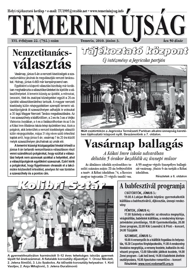 Temerini Újság, 16. évf. 2010. június 3. 22. sz.