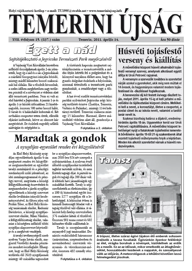 Temerini Újság, 17. évf. 2011. április 14. 15. sz.