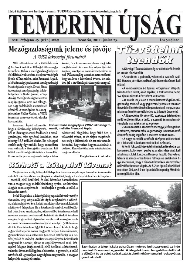 Temerini Újság, 17. évf. 2011. június 23. 25. sz.