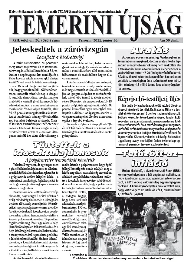 Temerini Újság, 17. évf. 2011. június 30. 26. sz.