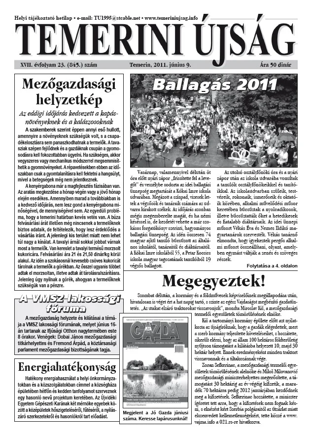 Temerini Újság, 17. évf. 2011. június 9. 23. sz.
