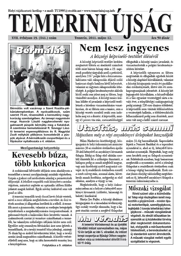 Temerini Újság, 17. évf. 2011. május 12. 19. sz.