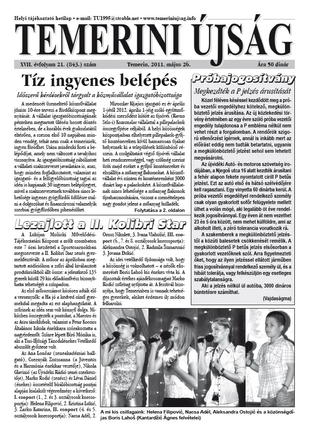 Temerini Újság, 17. évf. 2011. május 26. 21. sz.