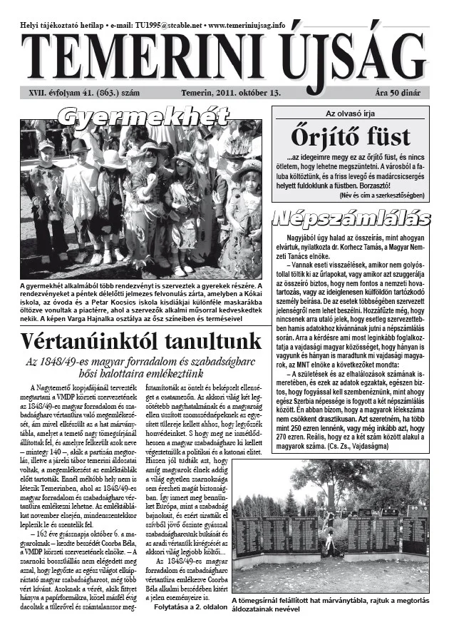 Temerini Újság, 17. évf. 2011. október 13. 41. sz.
