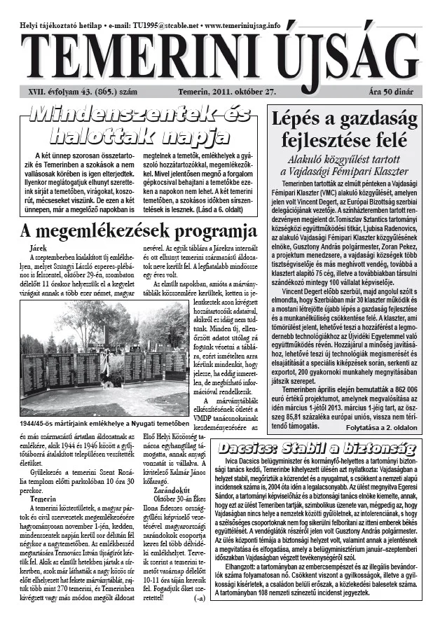 Temerini Újság, 17. évf. 2011. október 27. 43. sz.