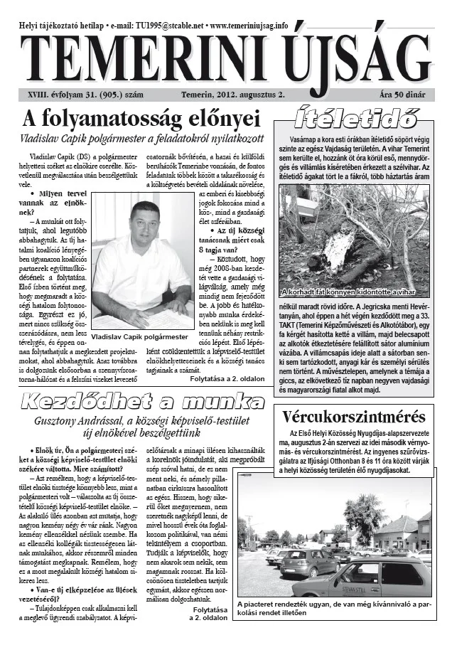 Temerini Újság, 18. évf. 2012. augusztus 2. 31. sz.