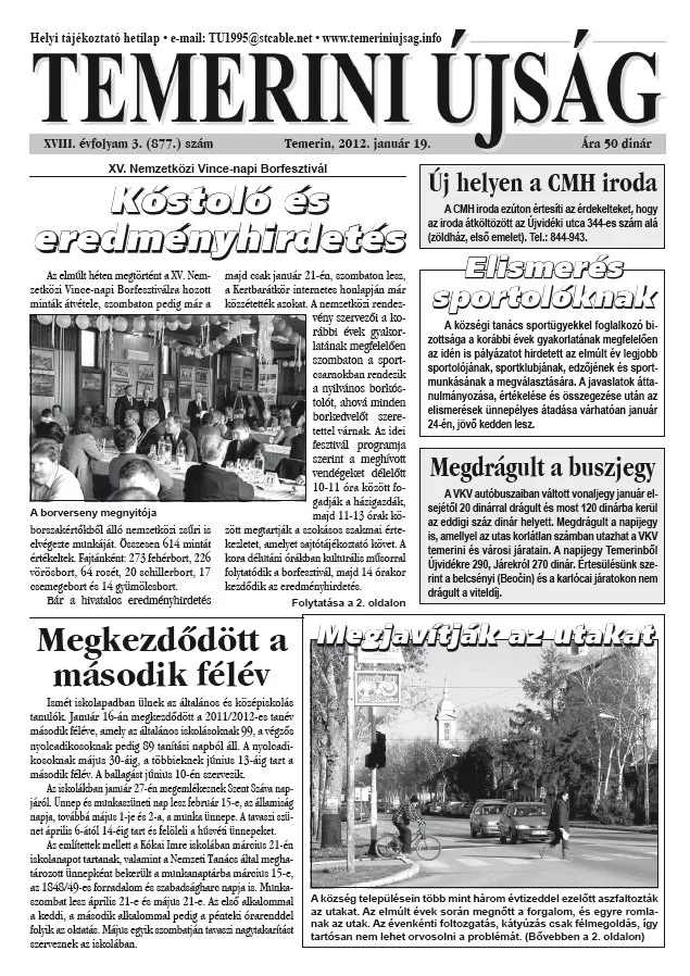 Temerini Újság, 18. évf. 2012. január 19. 3. sz.