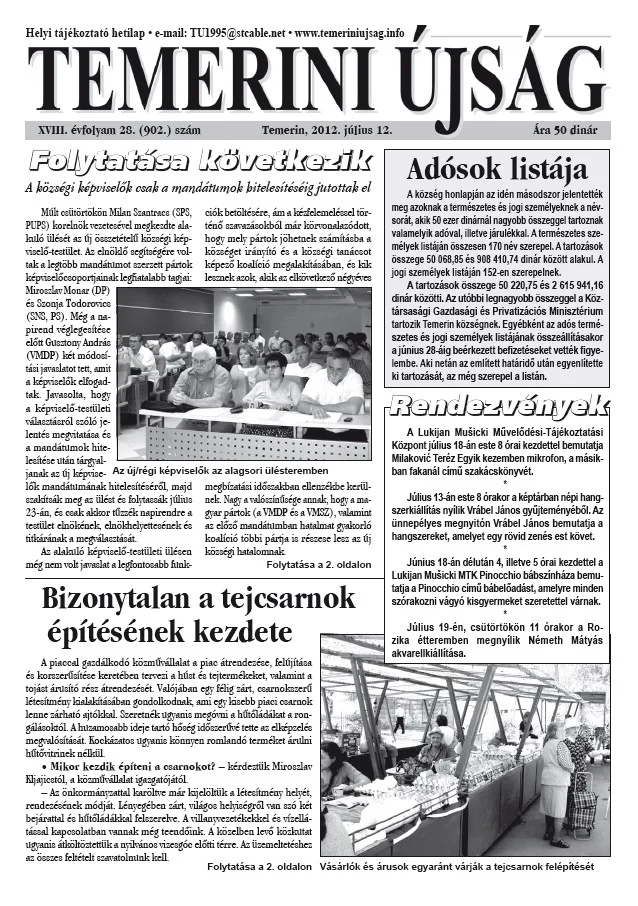 Temerini Újság, 18. évf. 2012. július 12. 28. sz.