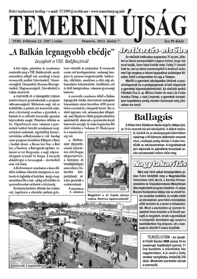 Temerini Újság, 18. évf. 2012. június 7. 23. sz.