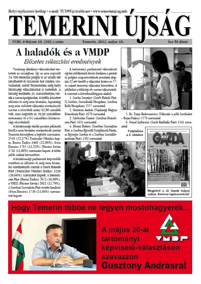 Temerini Újság, 18. évf. 2012. május 10. 19. sz.