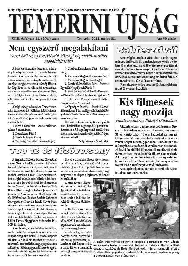 Temerini Újság, 18. évf. 2012. május 31. 22. sz.