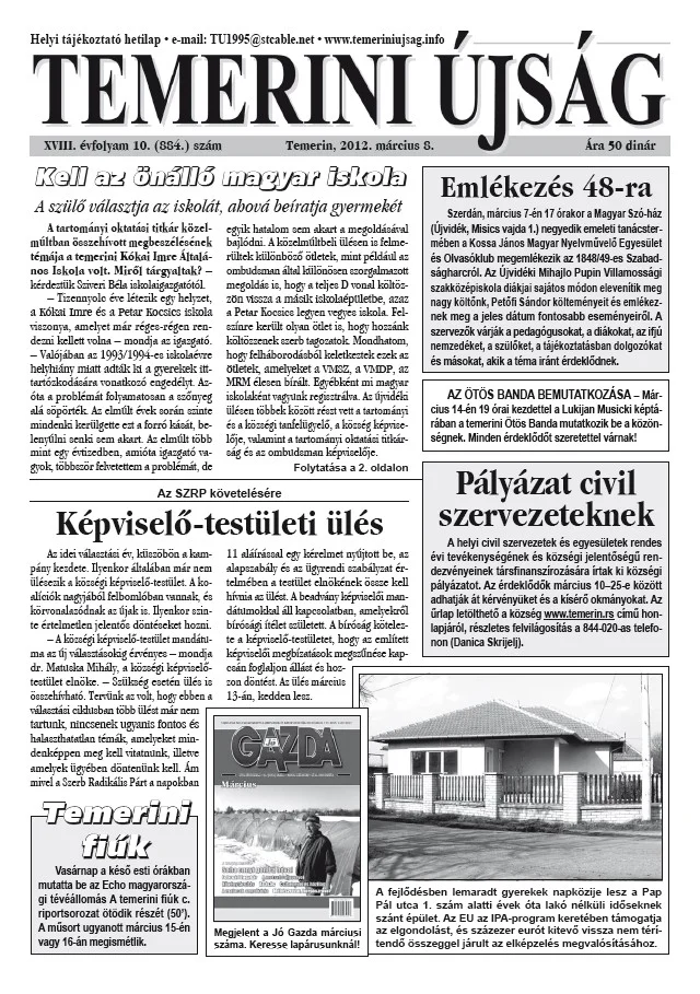 Temerini Újság, 18. évf. 2012. március 8. 10. sz.