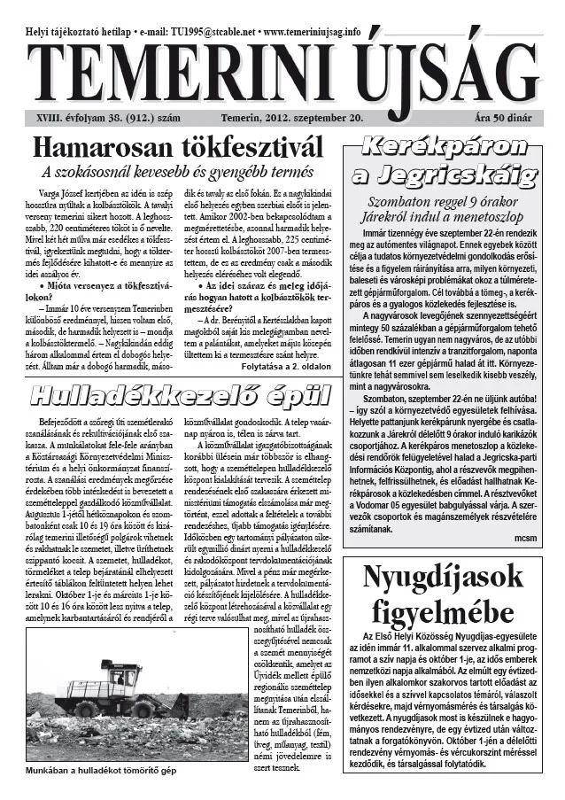 Temerini Újság, 18. évf. 2012. szeptember 20. 38. sz.