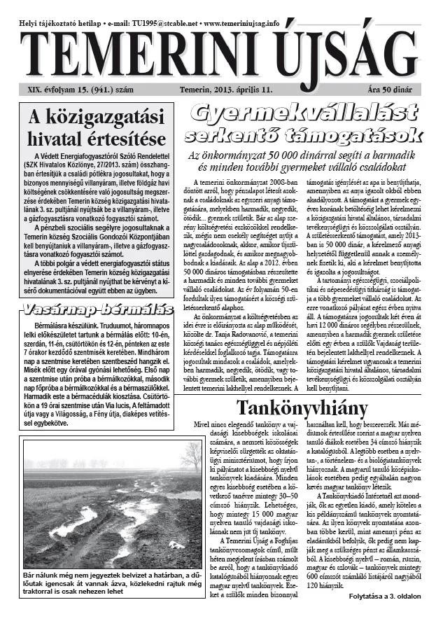 Temerini Újság, 19. évf. 2013. április 11. 15. sz.