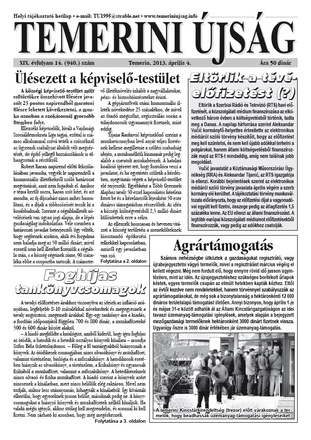 Temerini Újság, 19. évf. 2013. április 4. 14. sz.