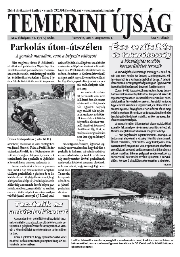 Temerini Újság, 19. évf. 2013. augusztus 1. 31. sz.