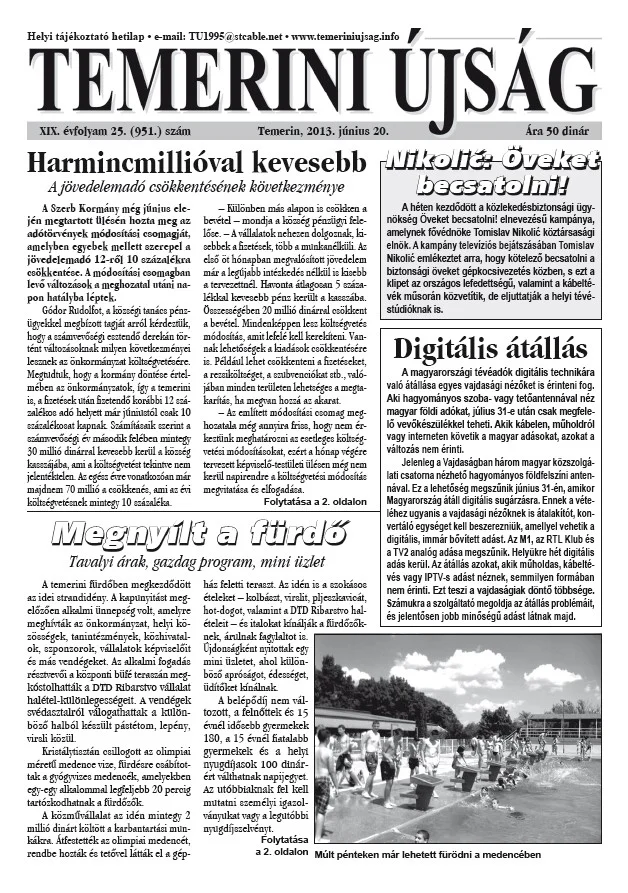 Temerini Újság, 19. évf. 2013. június 20. 25. sz.