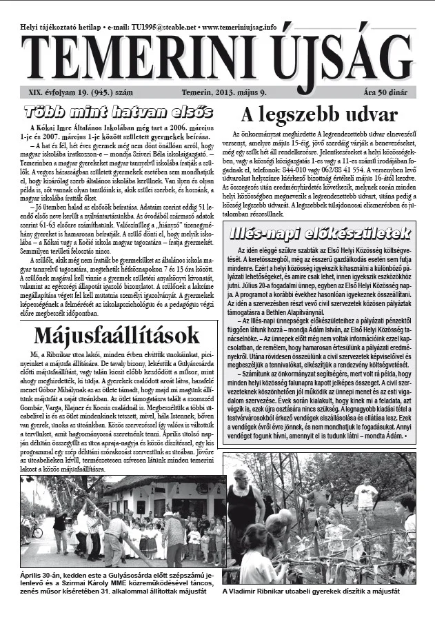 Temerini Újság, 19. évf. 2013. május 9. 19. sz.