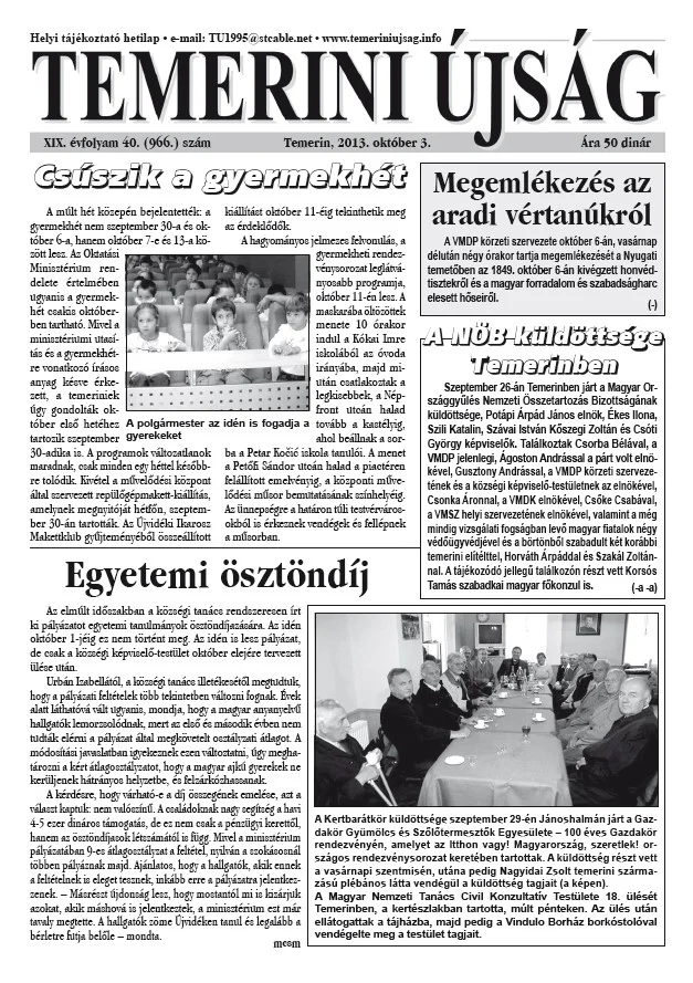 Temerini Újság, 19. évf. 2013. október 3. 40. sz.