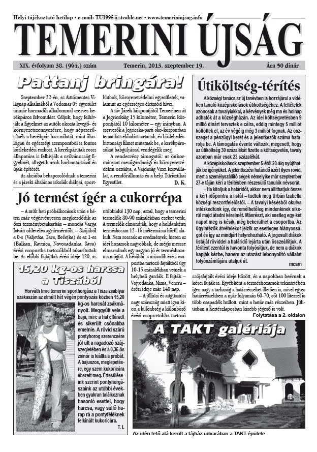 Temerini Újság, 19. évf. 2013. szeptember 19. 38. sz.