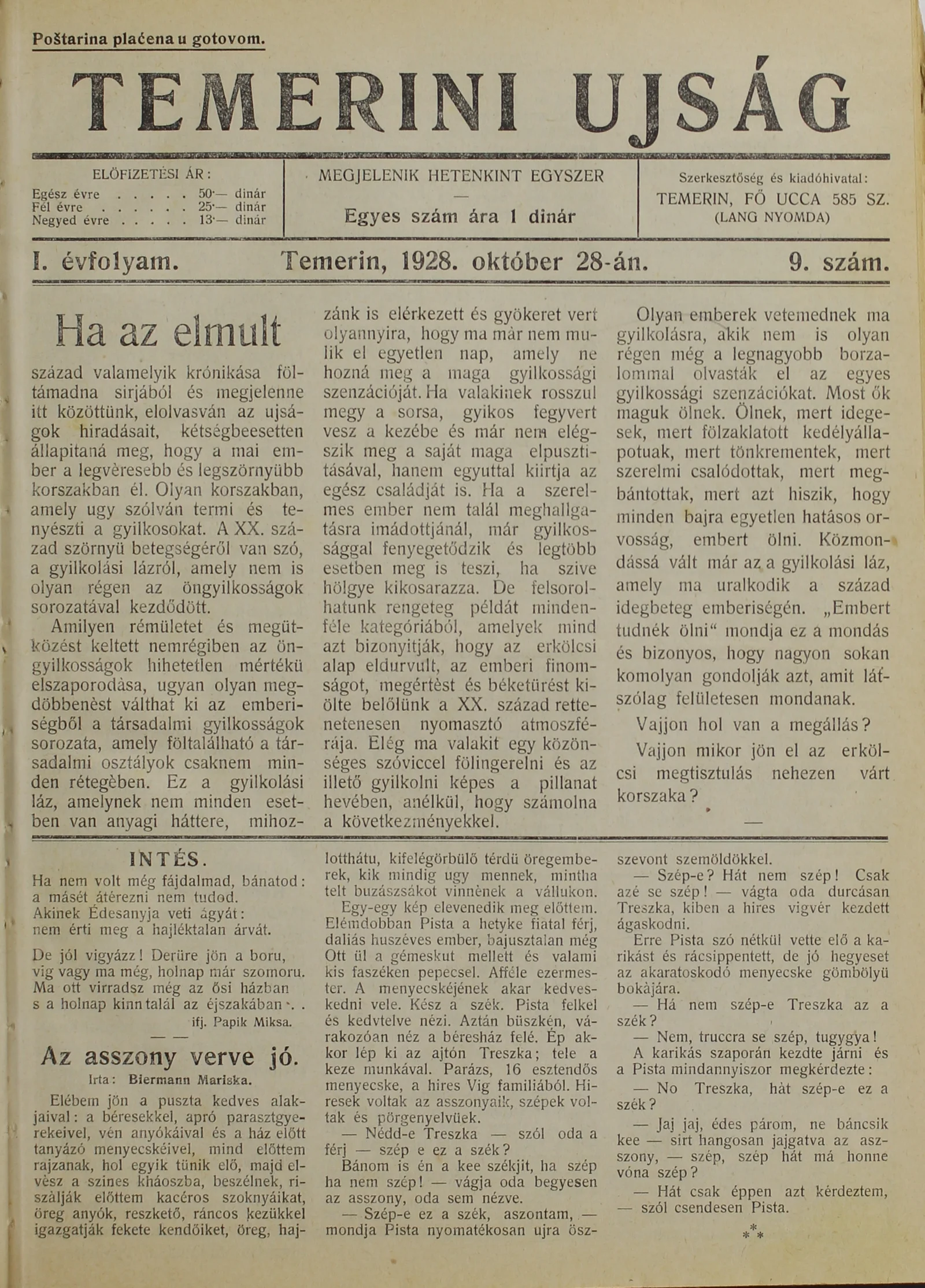Temerini Újság 1928-1944, 1. évf. 1928. október 28. 9. sz.
