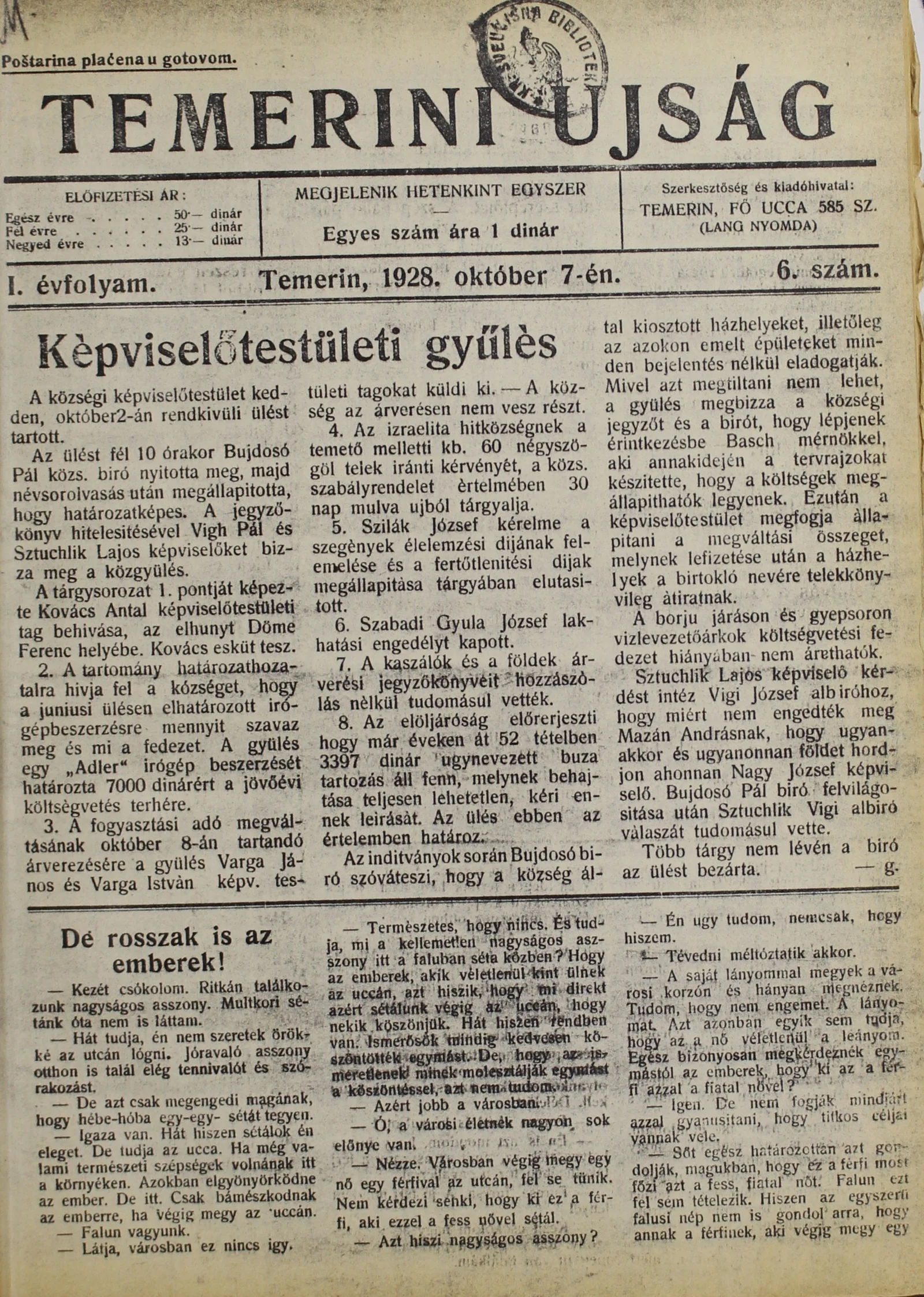 Temerini Újság 1928-1944, 1. évf. 1928. október 7. 6. sz.