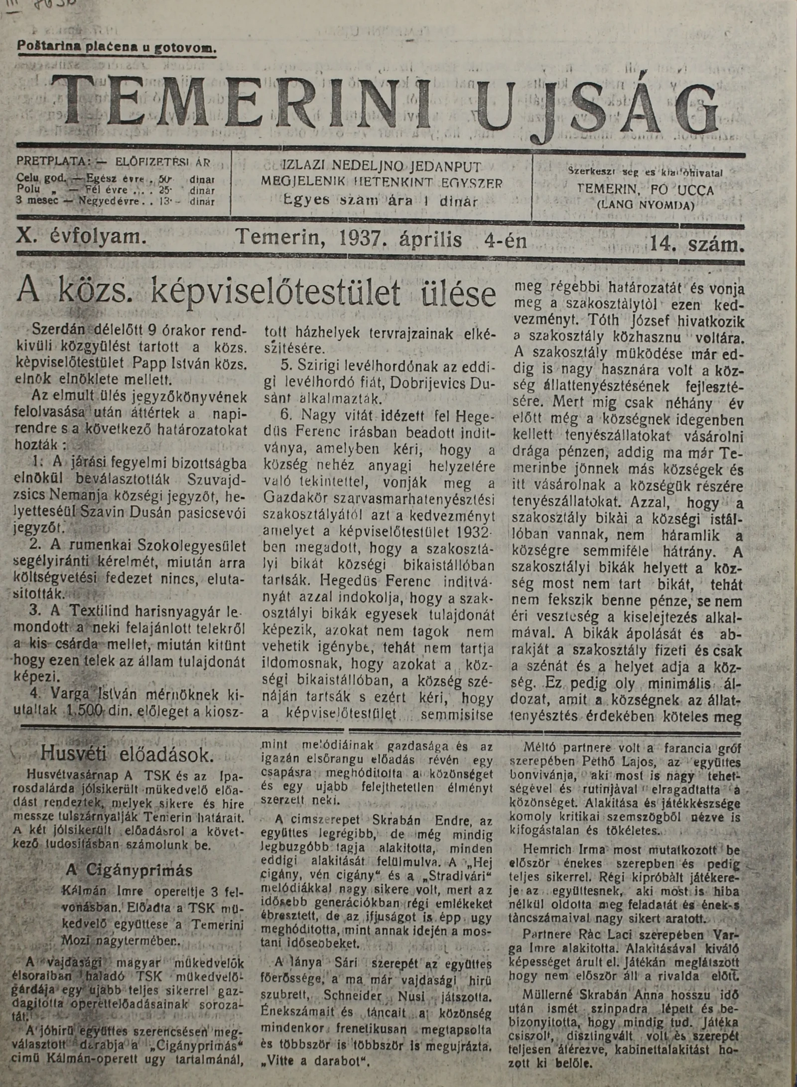 Temerini Újság 1928-1944, 10. évf. 1937. április 4. 14. sz.