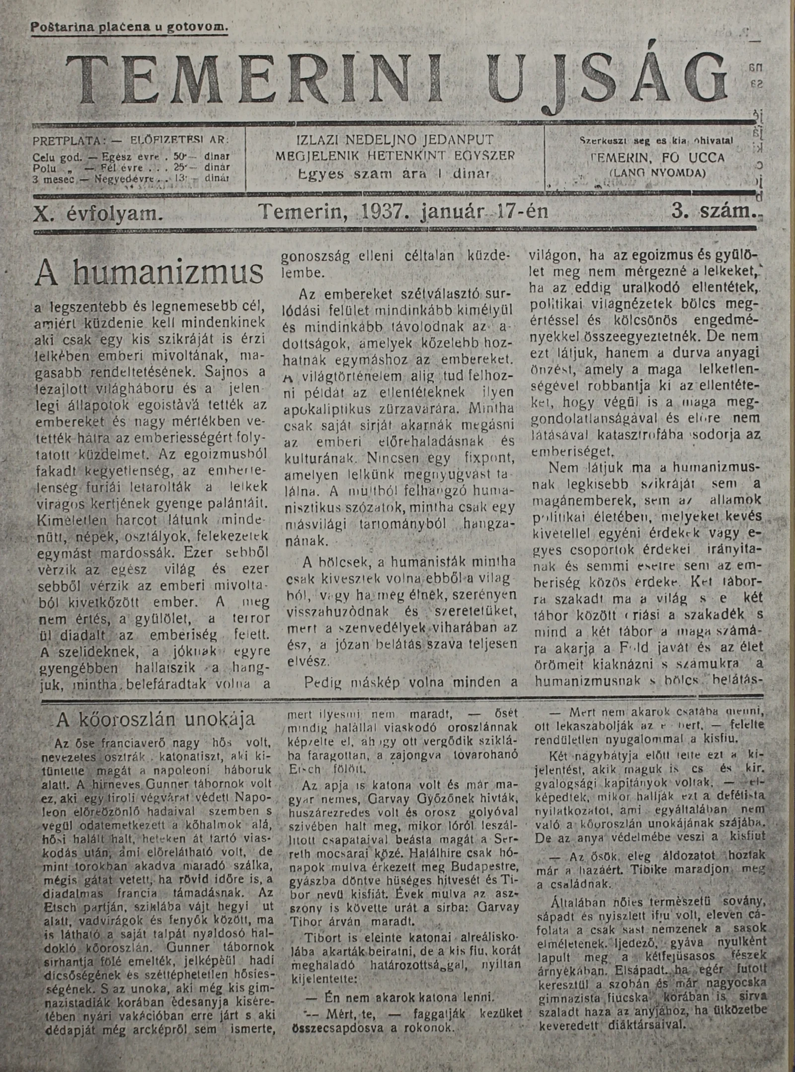 Temerini Újság 1928-1944, 10. évf. 1937. január 17. 3. sz.
