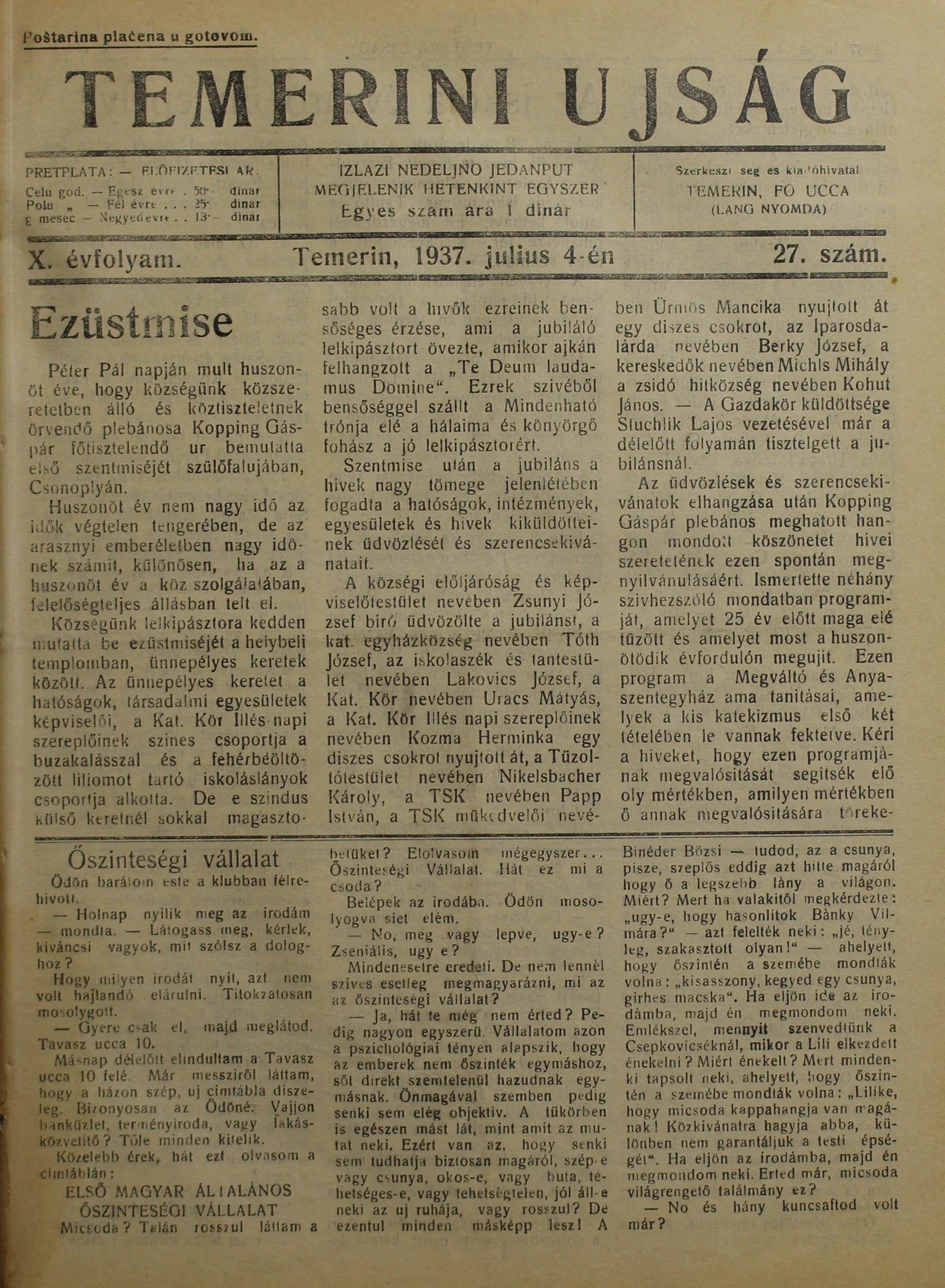 Temerini Újság 1928-1944, 10. évf. 1937. július 4. 27. sz.