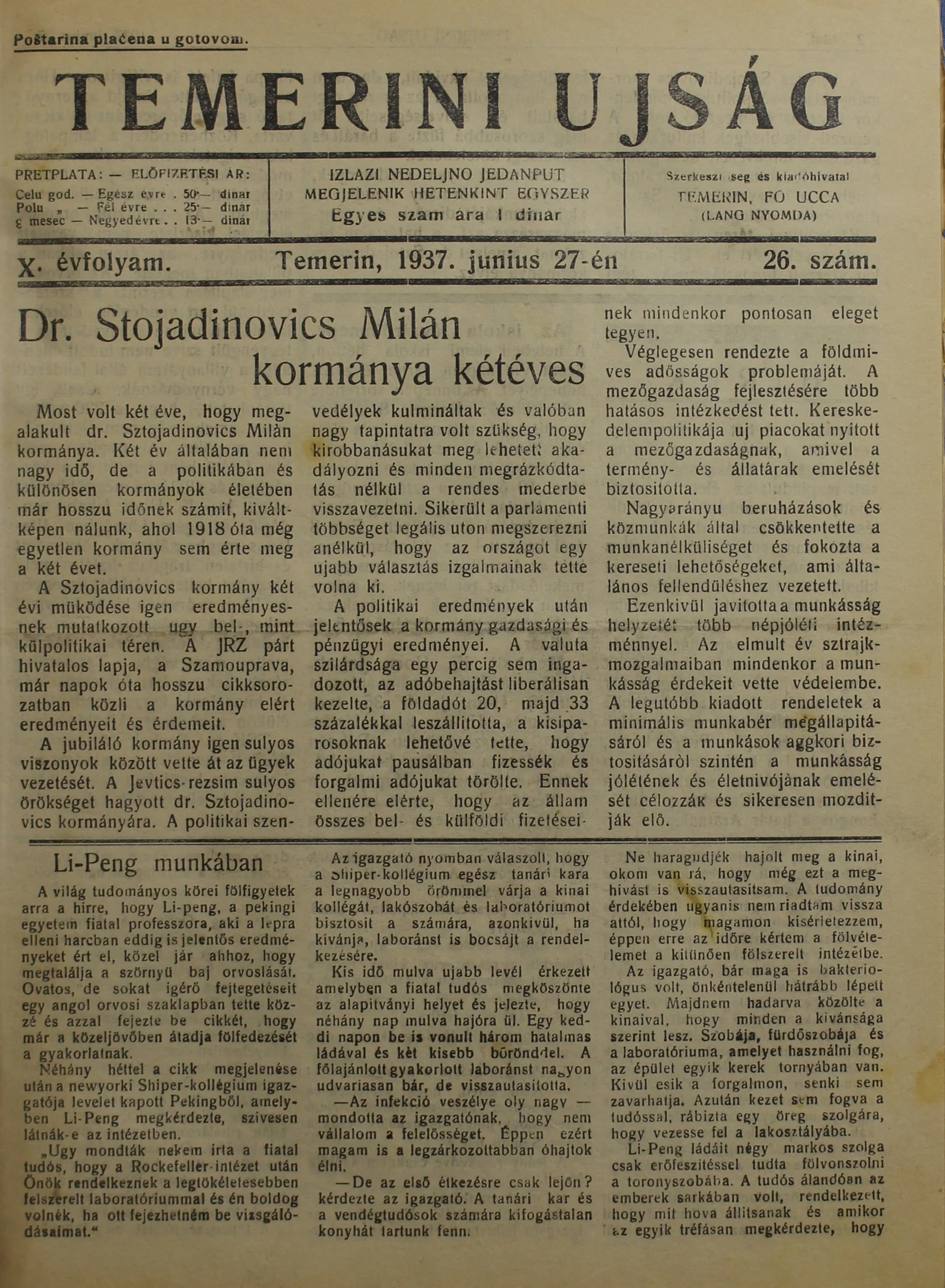 Temerini Újság 1928-1944, 10. évf. 1937. június 27. 26. sz.