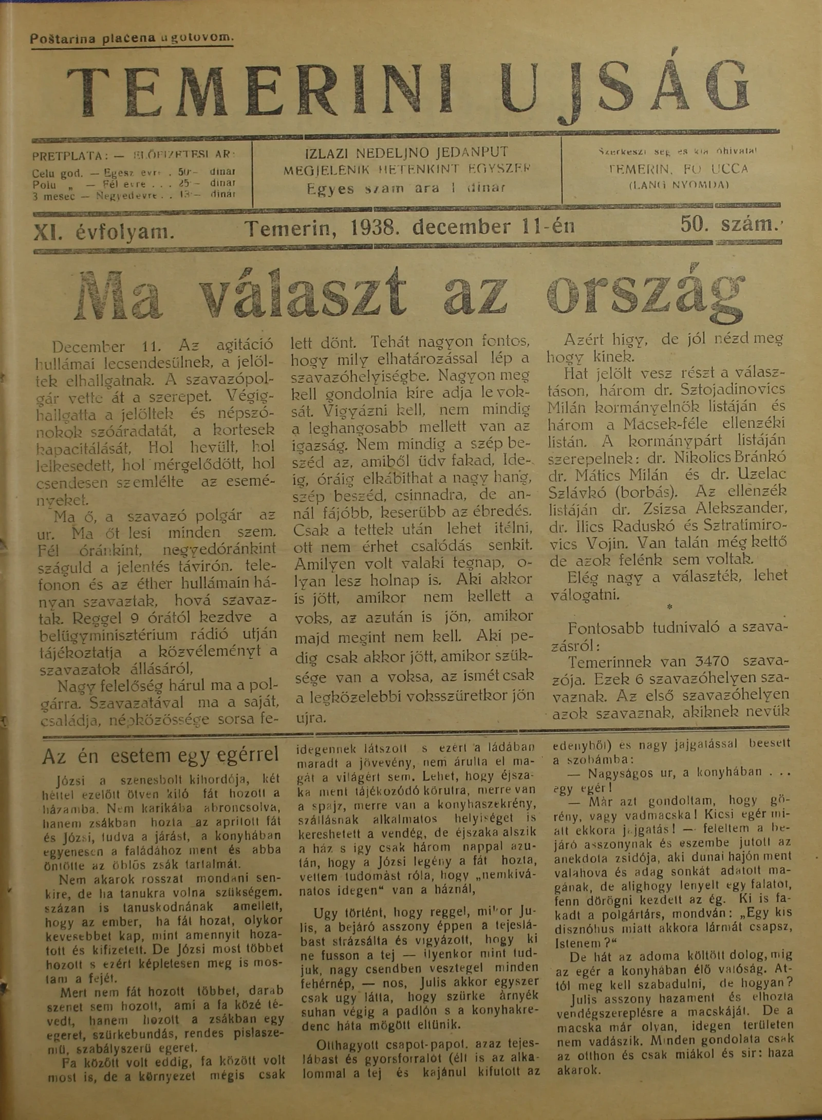 Temerini Újság 1928-1944, 11. évf. 1938. december 11. 50. sz.
