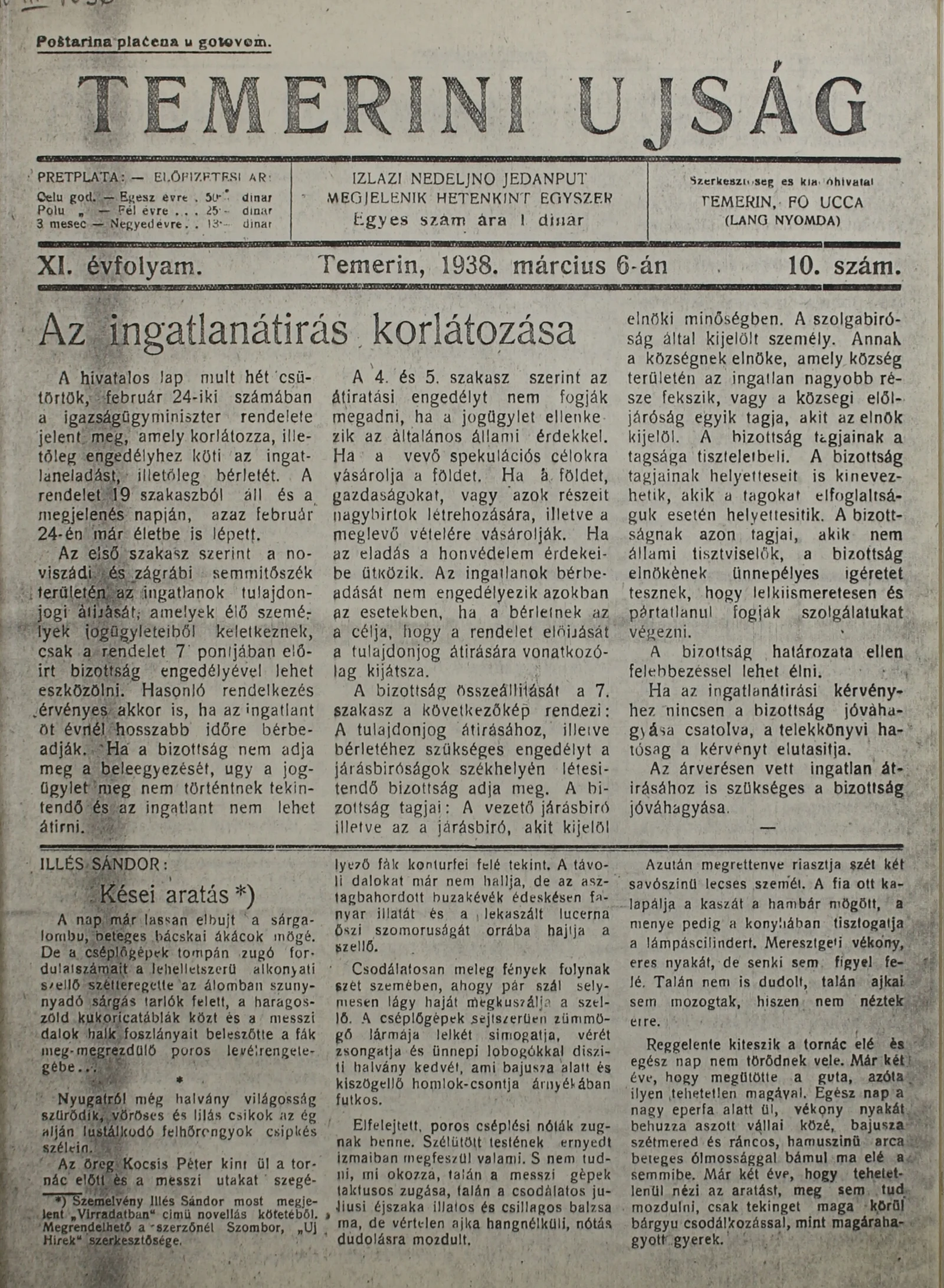 Temerini Újság 1928-1944, 11. évf. 1938. március 6. 10. sz.