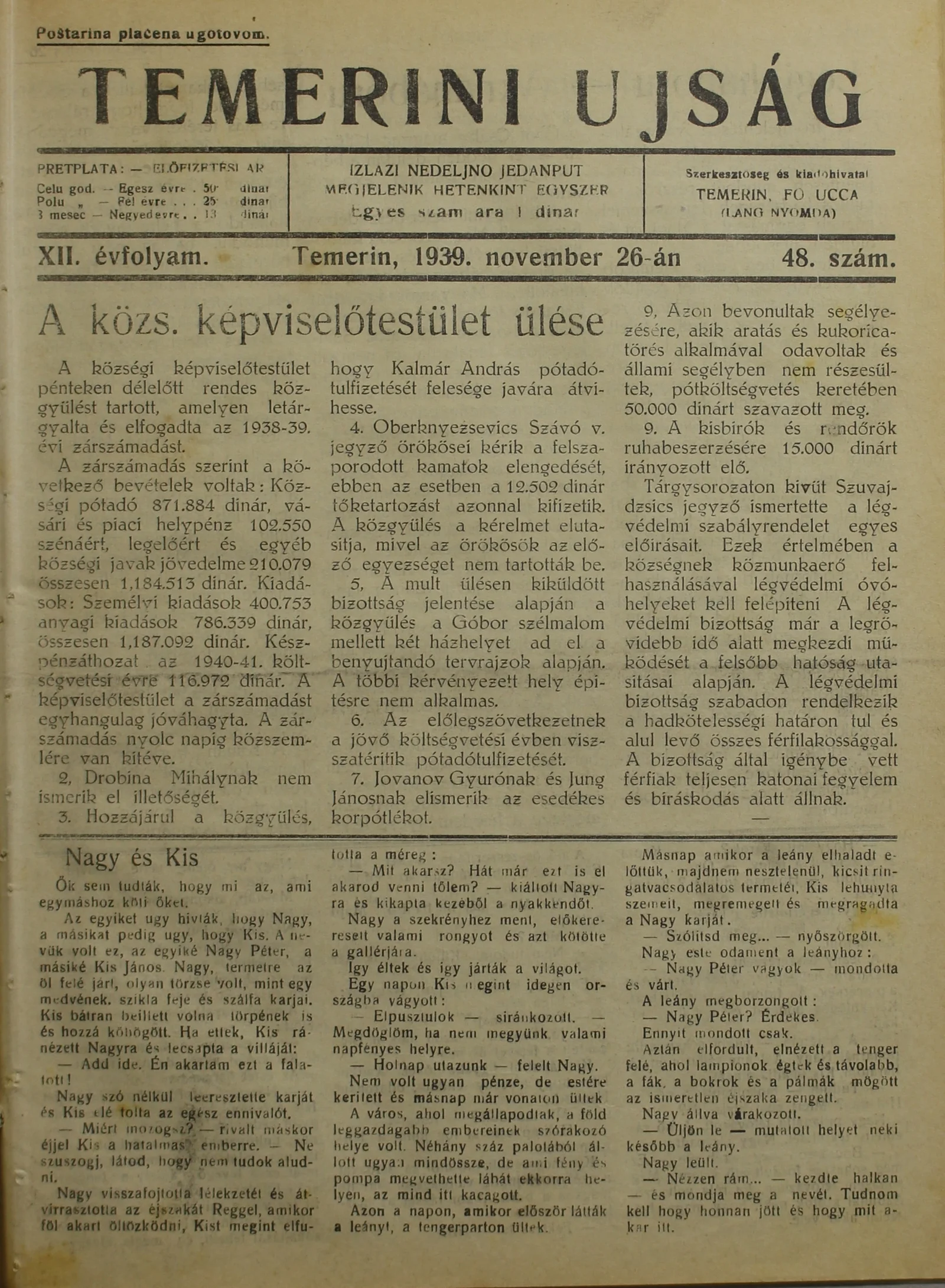Temerini Újság 1928-1944, 12. évf. 1939. november 26. 48. sz.