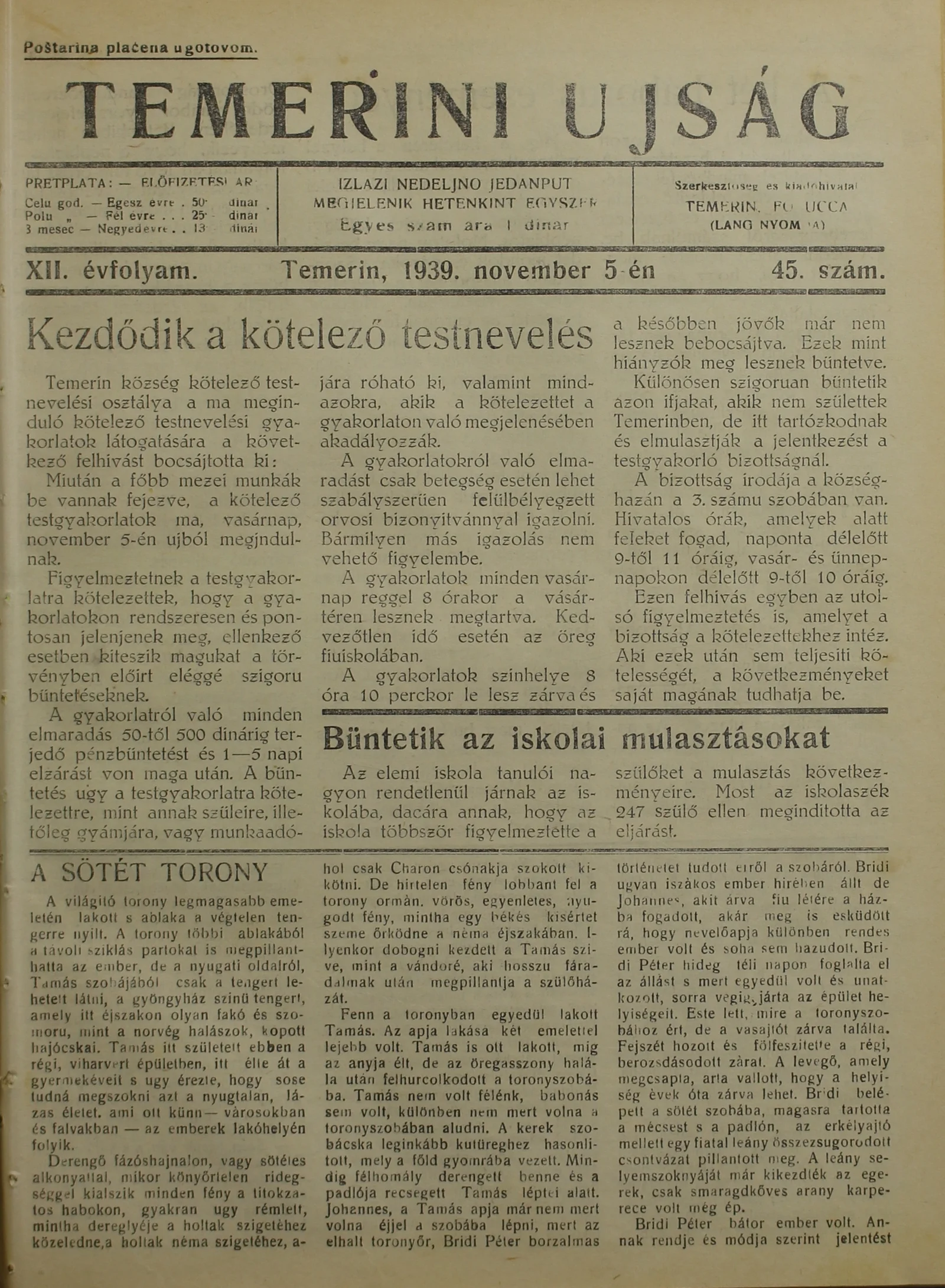 Temerini Újság 1928-1944, 12. évf. 1939. november 5. 45. sz.