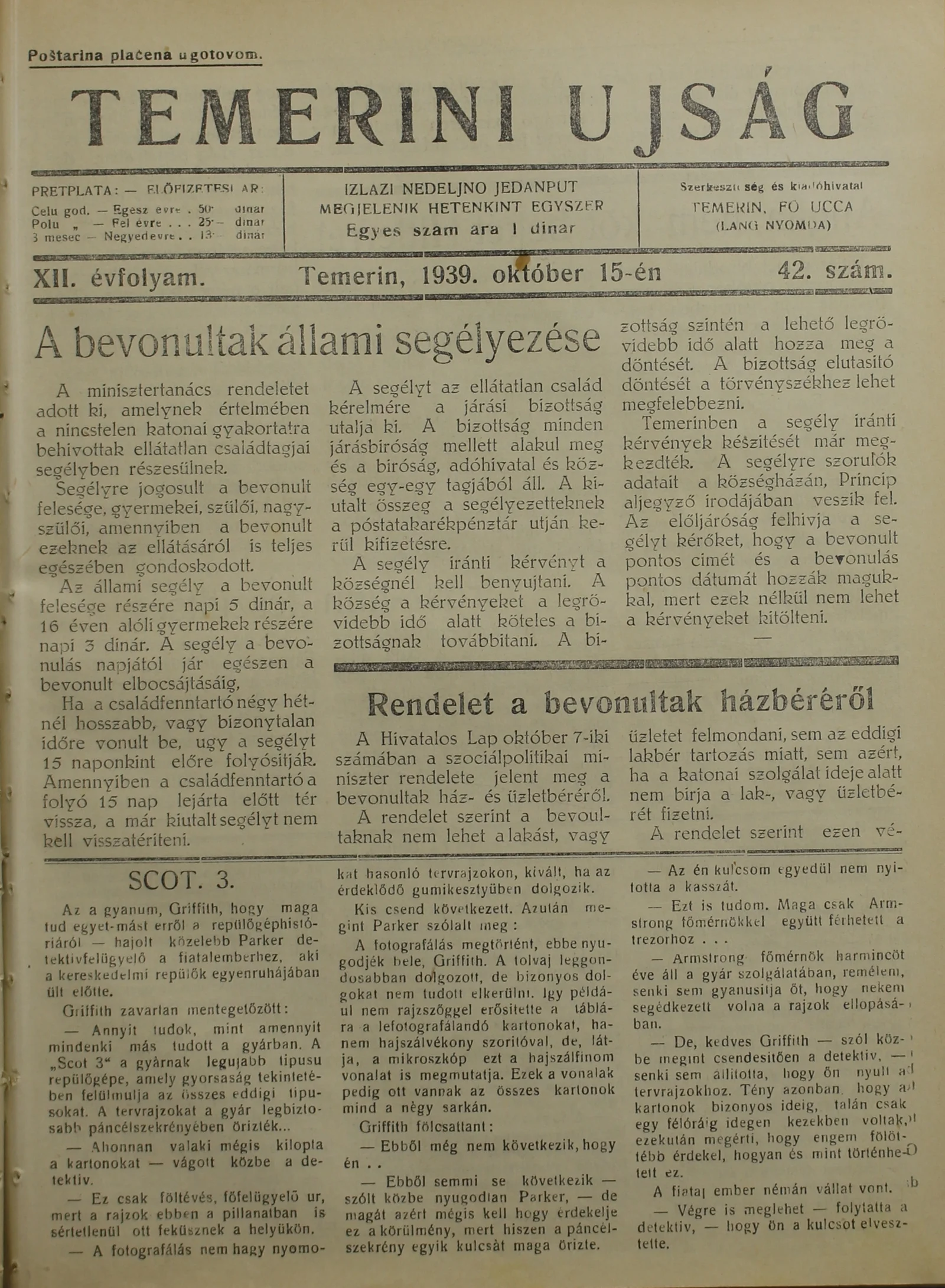 Temerini Újság 1928-1944, 12. évf. 1939. október 15. 42. sz.
