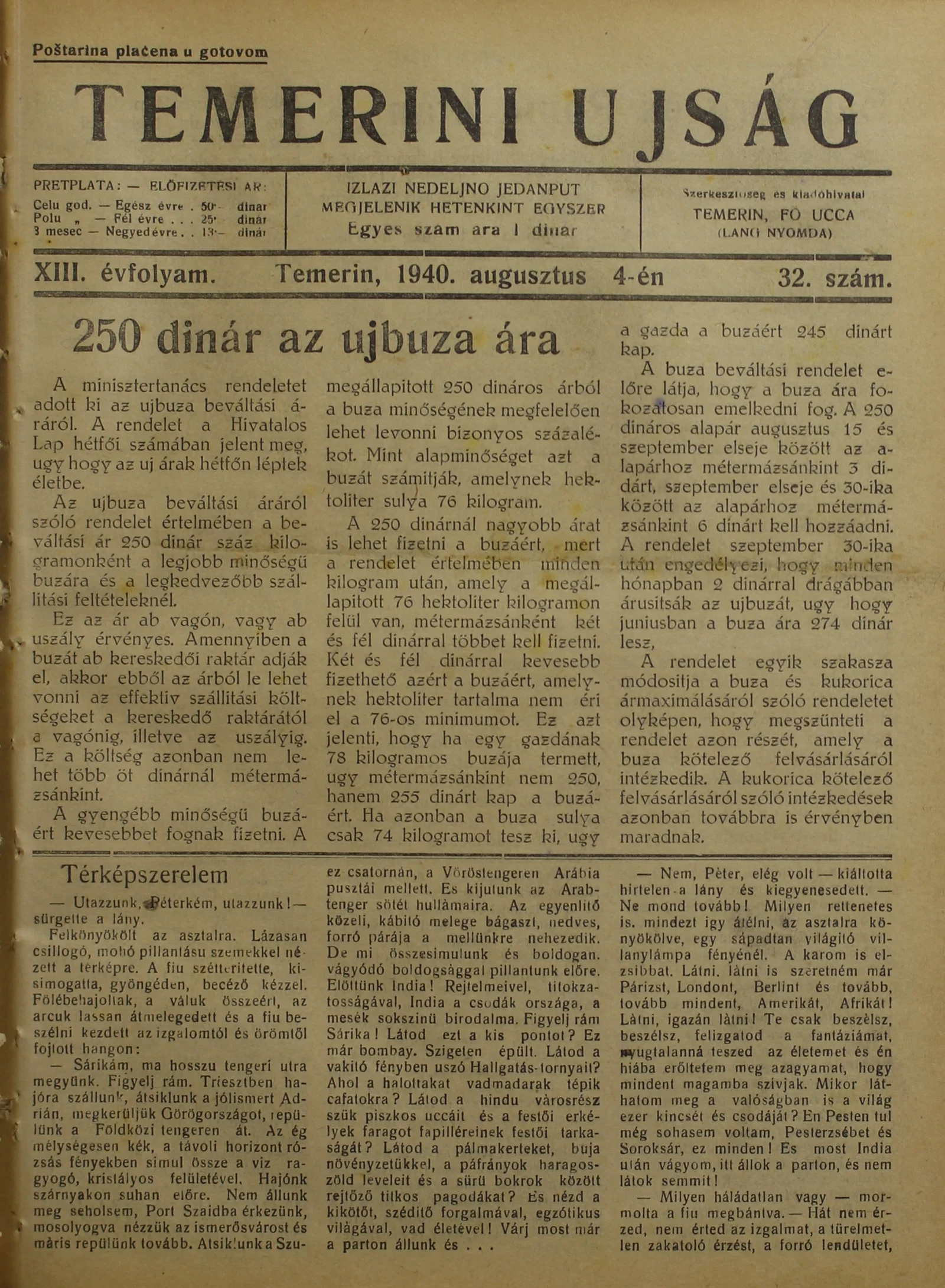 Temerini Újság 1928-1944, 13. évf. 1940. augusztus 4. 32. sz.