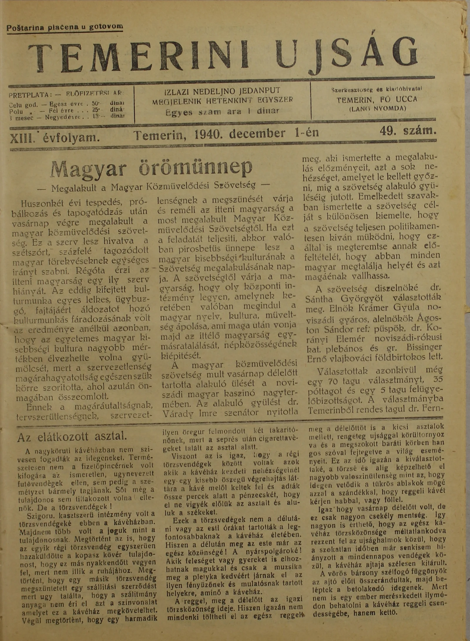 Temerini Újság 1928-1944, 13. évf. 1940. december 1. 49. sz.