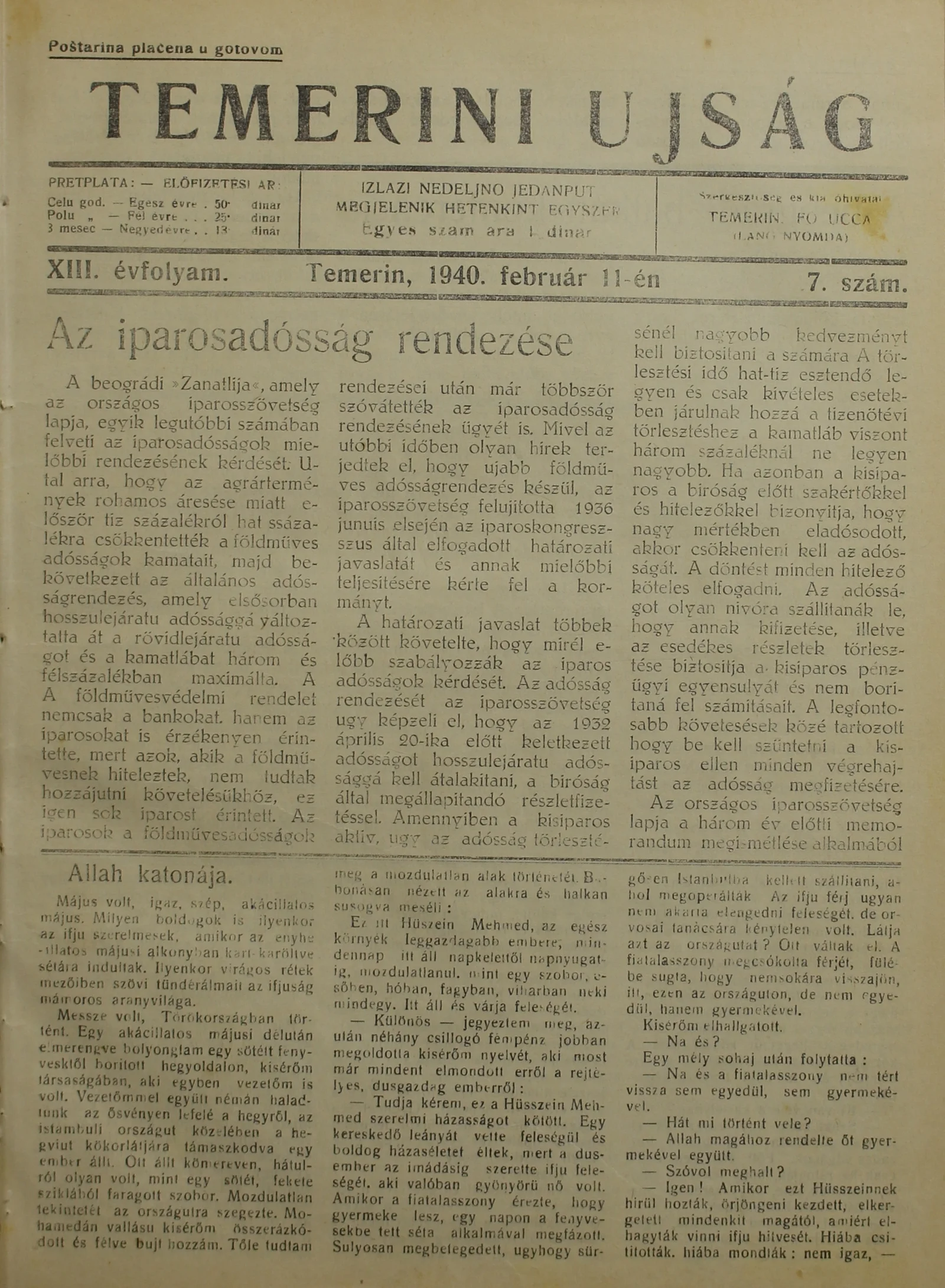 Temerini Újság 1928-1944, 13. évf. 1940. február 11. 7. sz.
