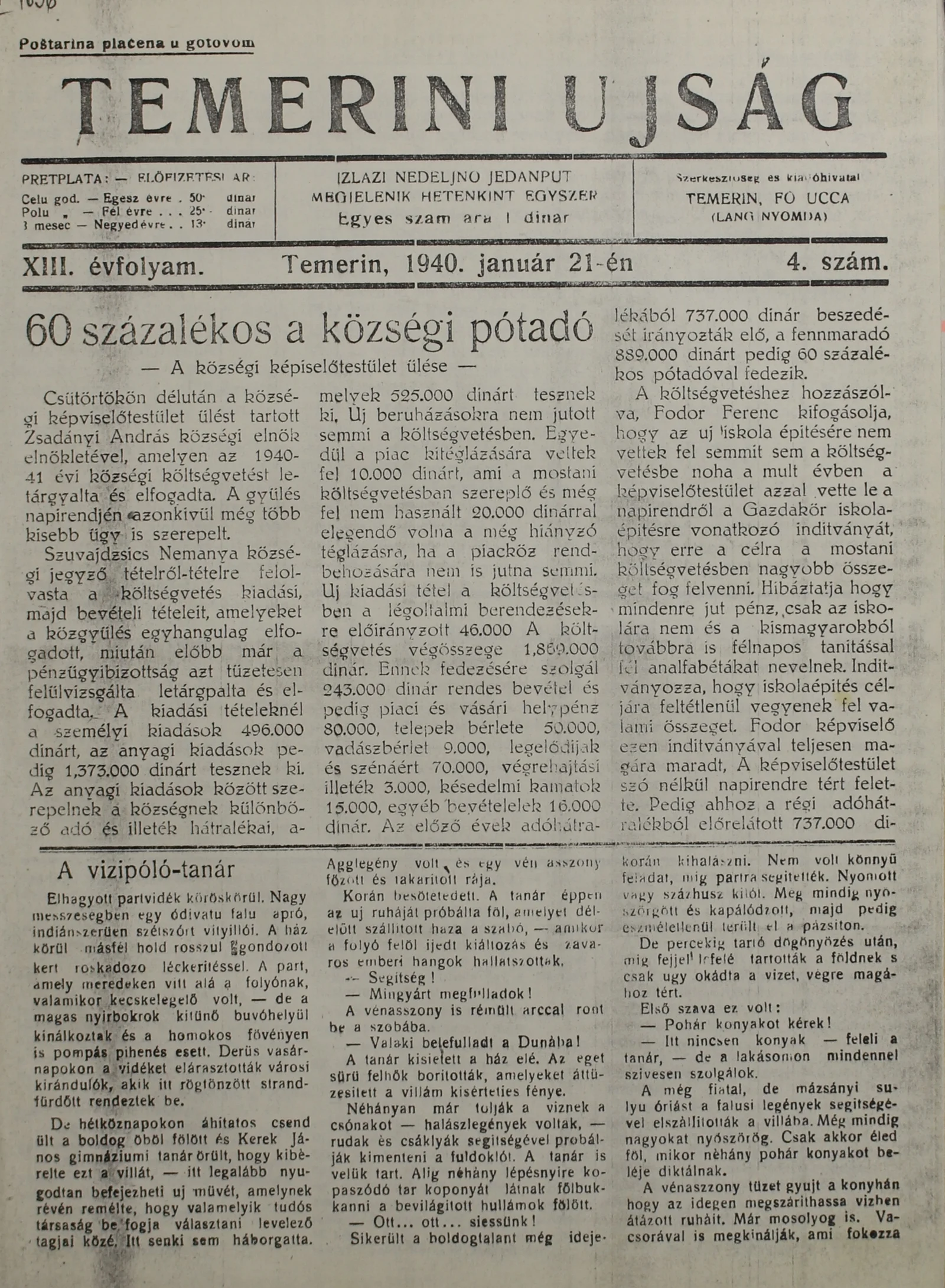 Temerini Újság 1928-1944, 13. évf. 1940. január 21. 4. sz.