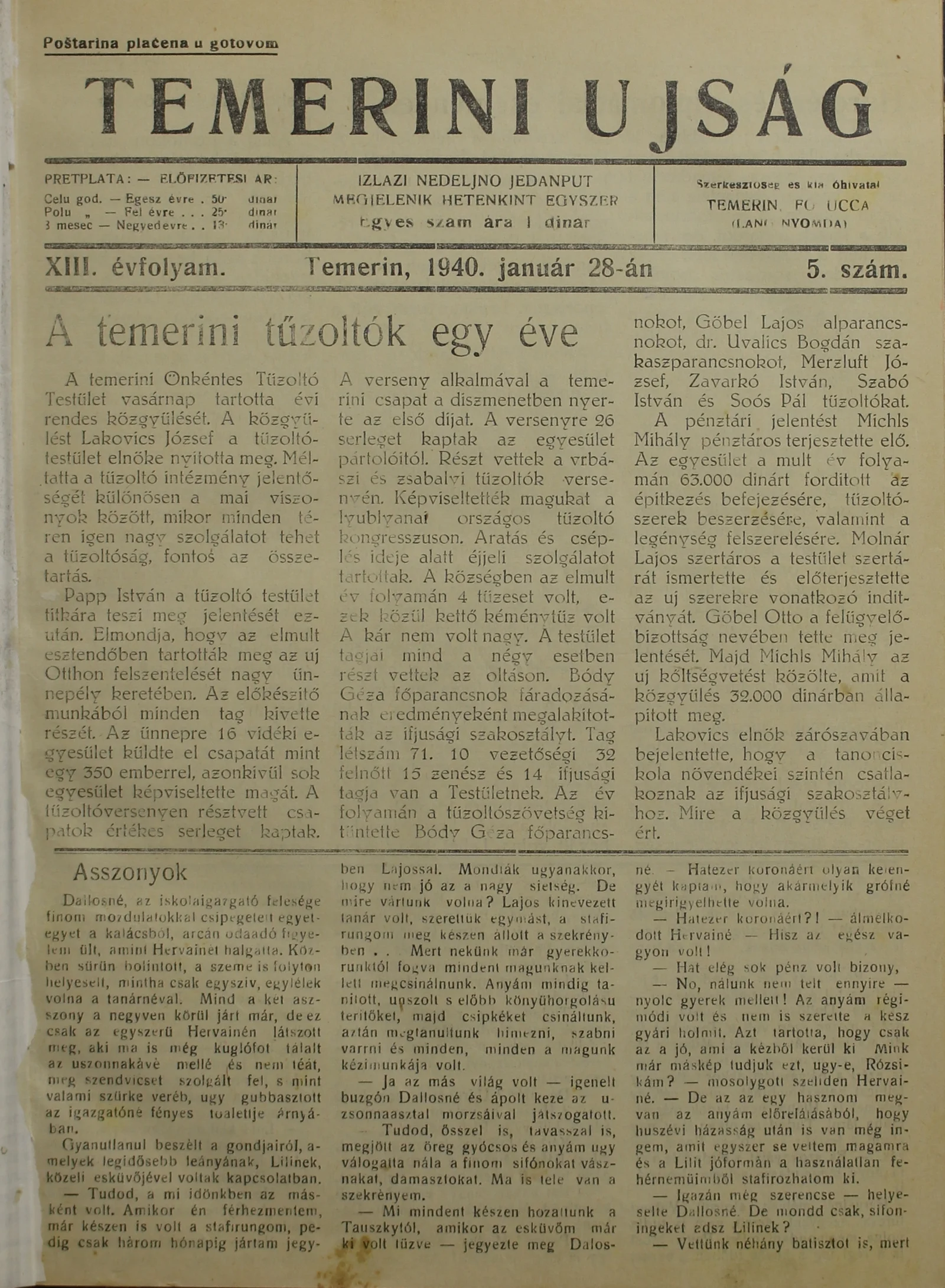 Temerini Újság 1928-1944, 13. évf. 1940. január 28. 5. sz.