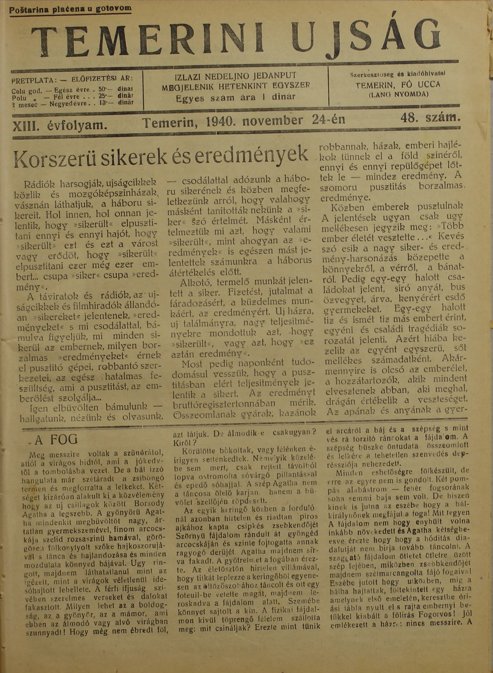 Temerini Újság 1928-1944, 13. évf. 1940. november 24. 48. sz.