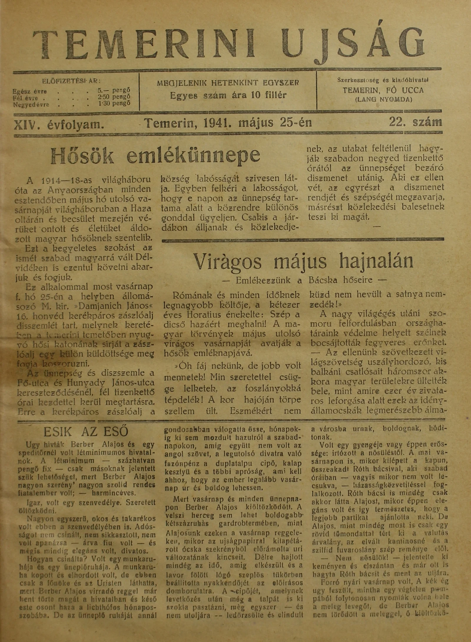 Temerini Újság 1928-1944, 14. évf. 1941. május 25. 22. sz.
