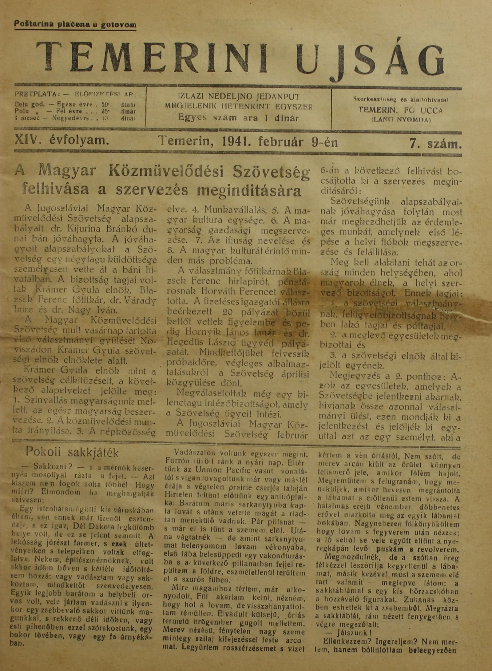 Temerini Újság 1928-1944, 15. évf. 1941. február 9. 7. sz.