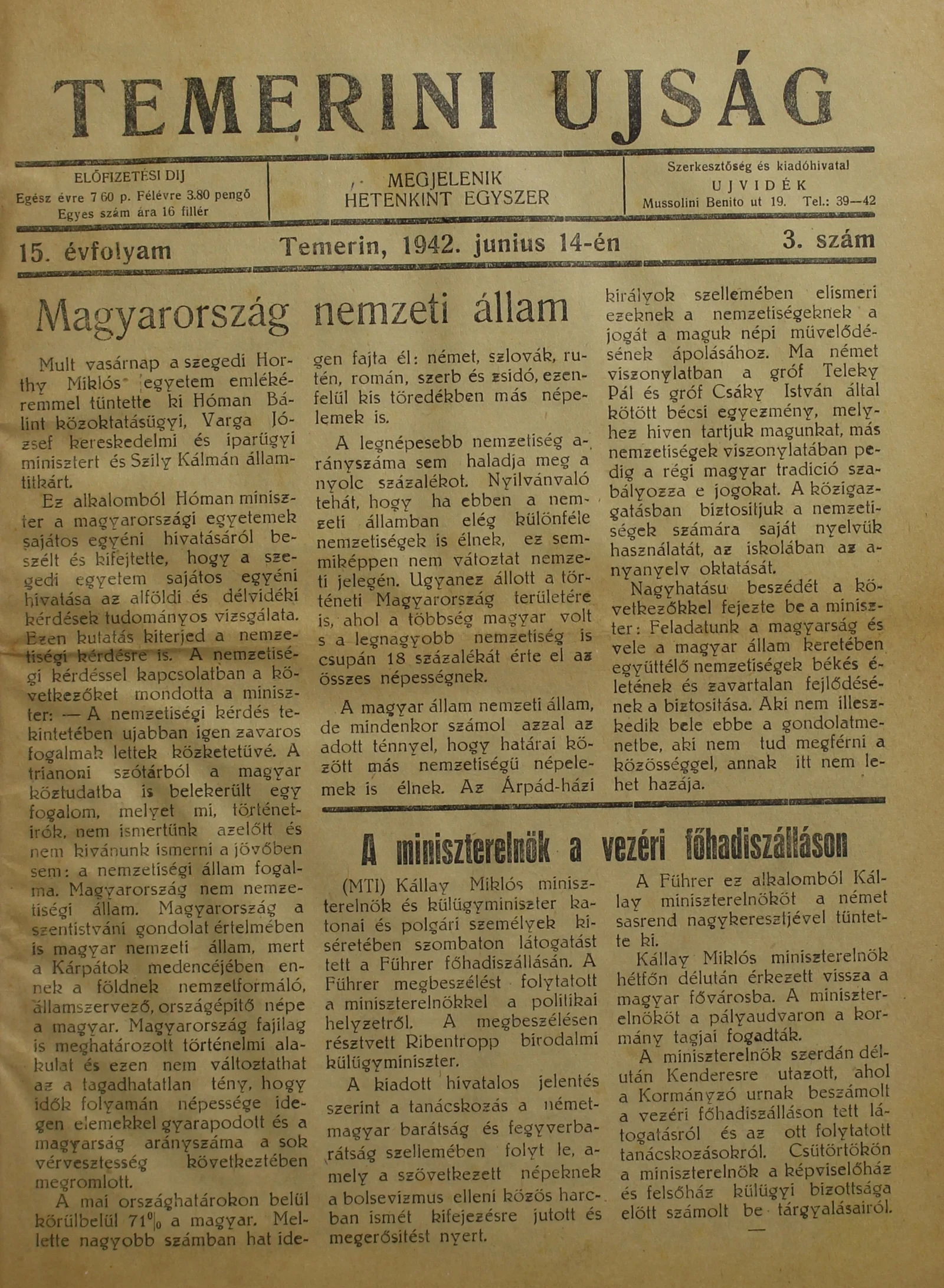 Temerini Újság 1928-1944, 15. évf. 1942. június 14. 3. sz.