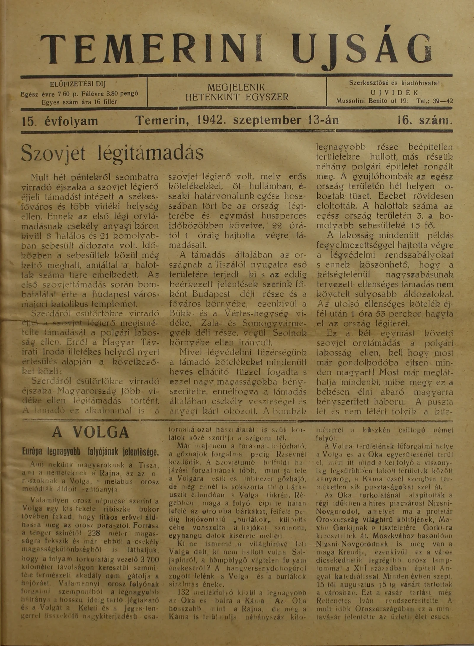 Temerini Újság 1928-1944, 15. évf. 1942. szeptember 13. 16. sz.