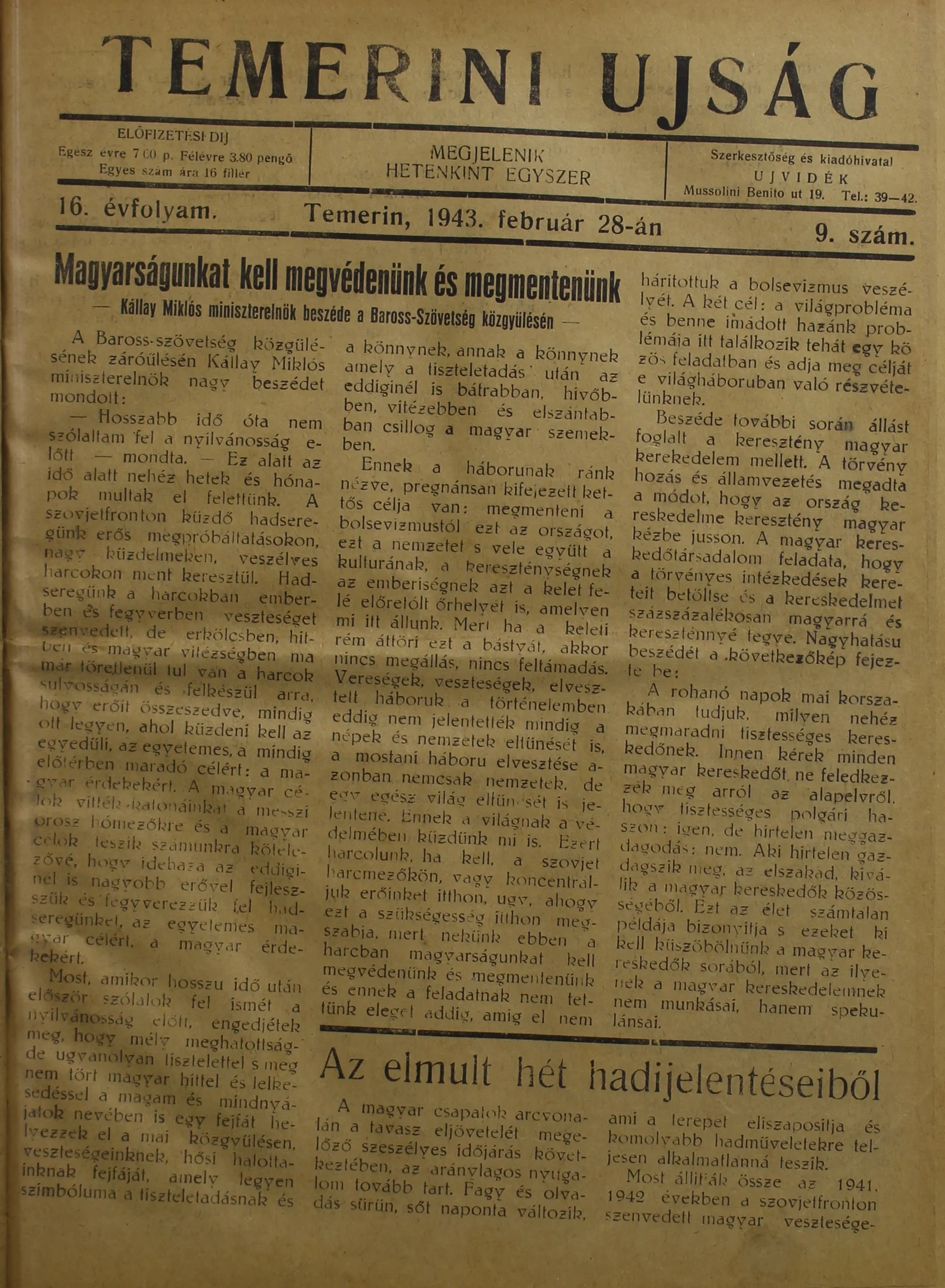 Temerini Újság 1928-1944, 16. évf. 1943. február 28. 9. sz.