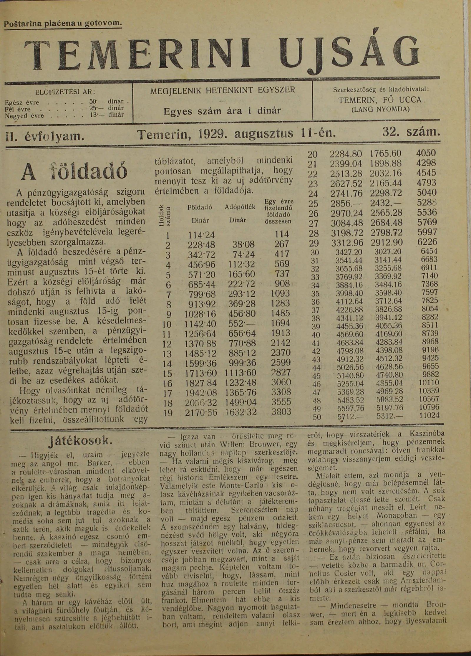 Temerini Újság 1928-1944, 2. évf. 1929. augusztus 11. 32. sz.