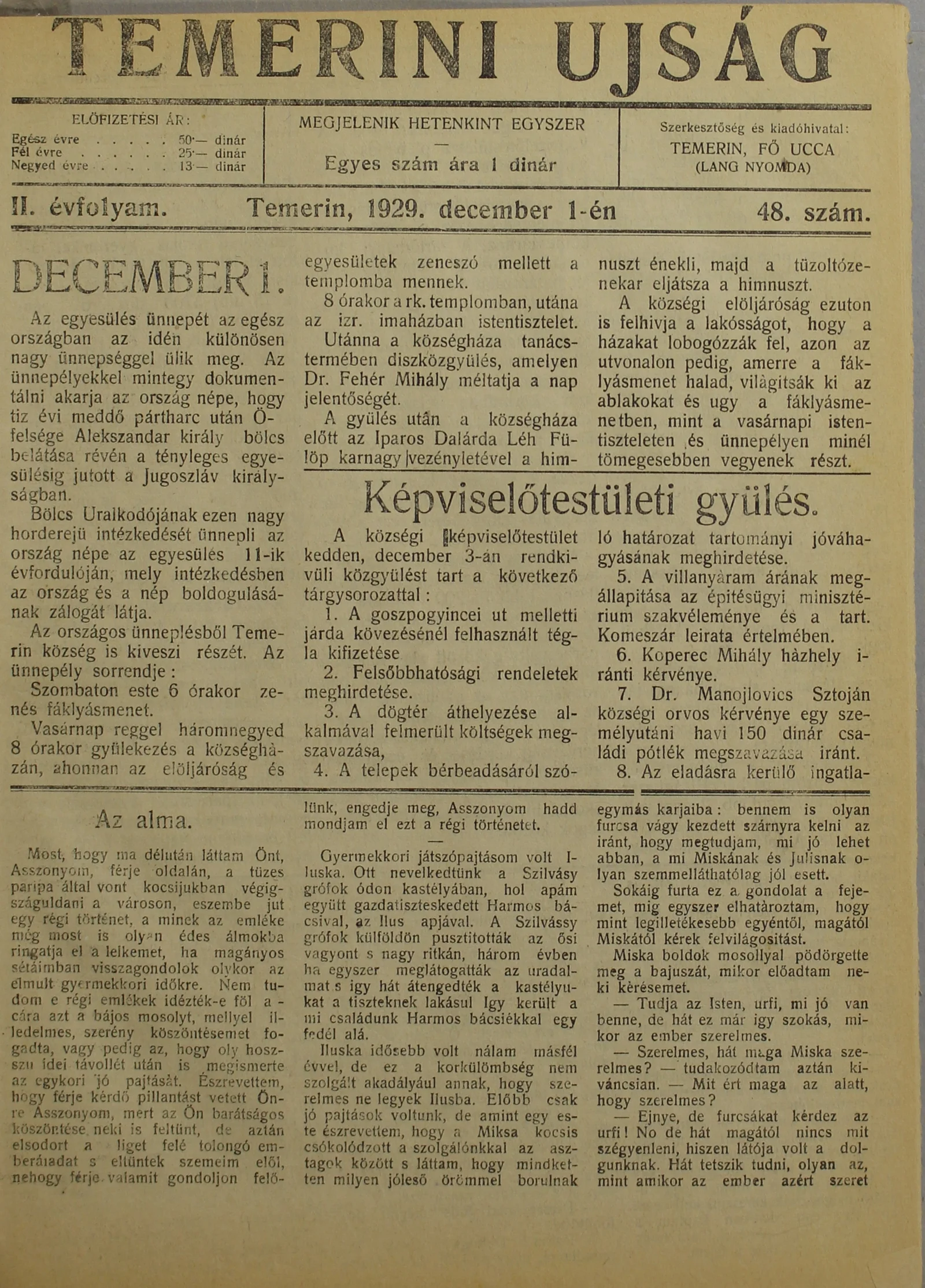 Temerini Újság 1928-1944, 2. évf. 1929. december 1. 48. sz.