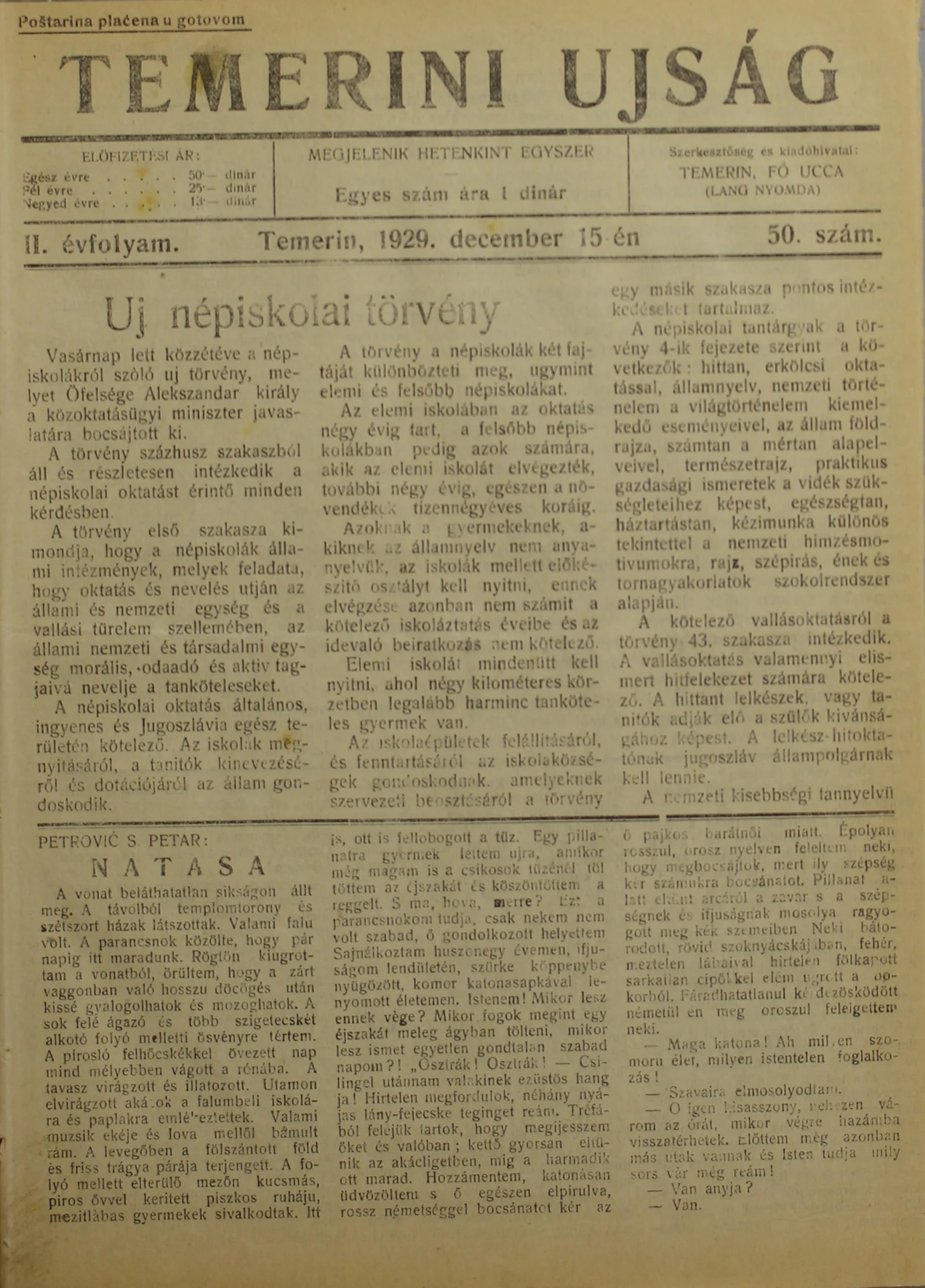 Temerini Újság 1928-1944, 2. évf. 1929. december 15. 50. sz.